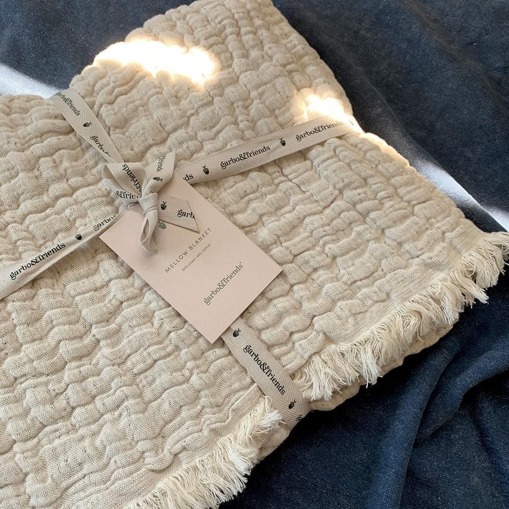 Garbo&Friends Mellow Lin Blanket S ガルボアンドフレンズ フリンジリネンブランケット Sサイズ(ベージュ)