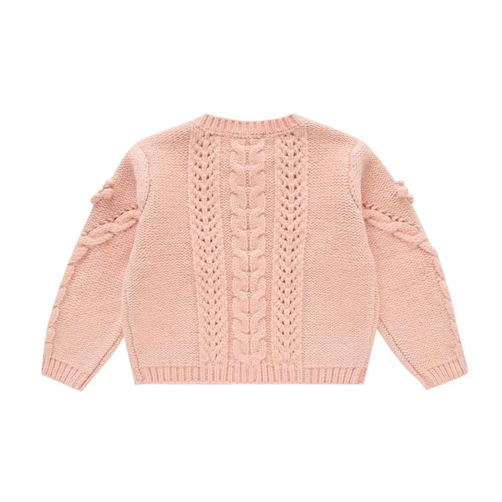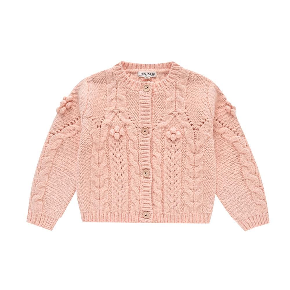 寒い冬に心強い厚手のニットカーディガン。お花のようなぽこぽこしたデザインが可愛らしいですね。