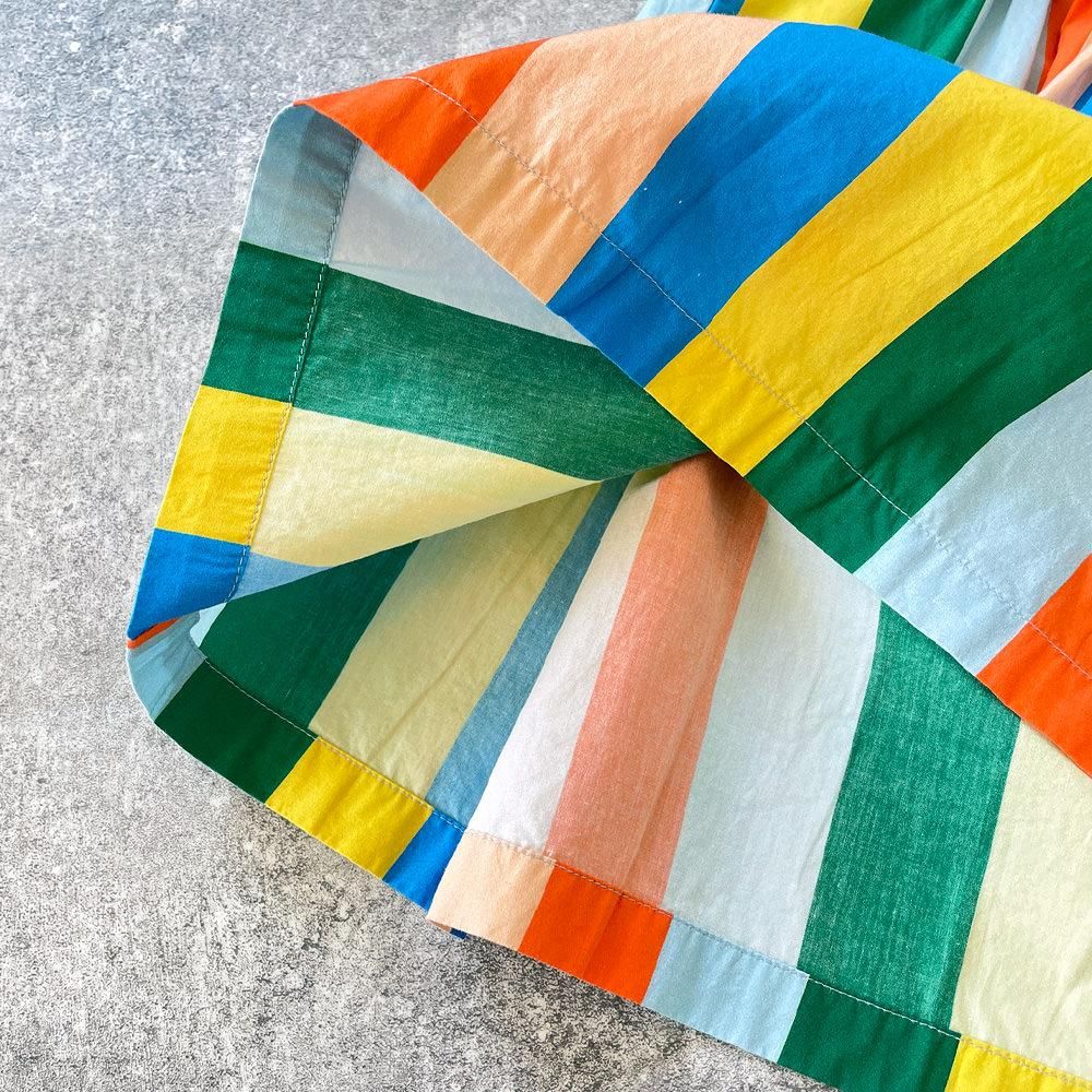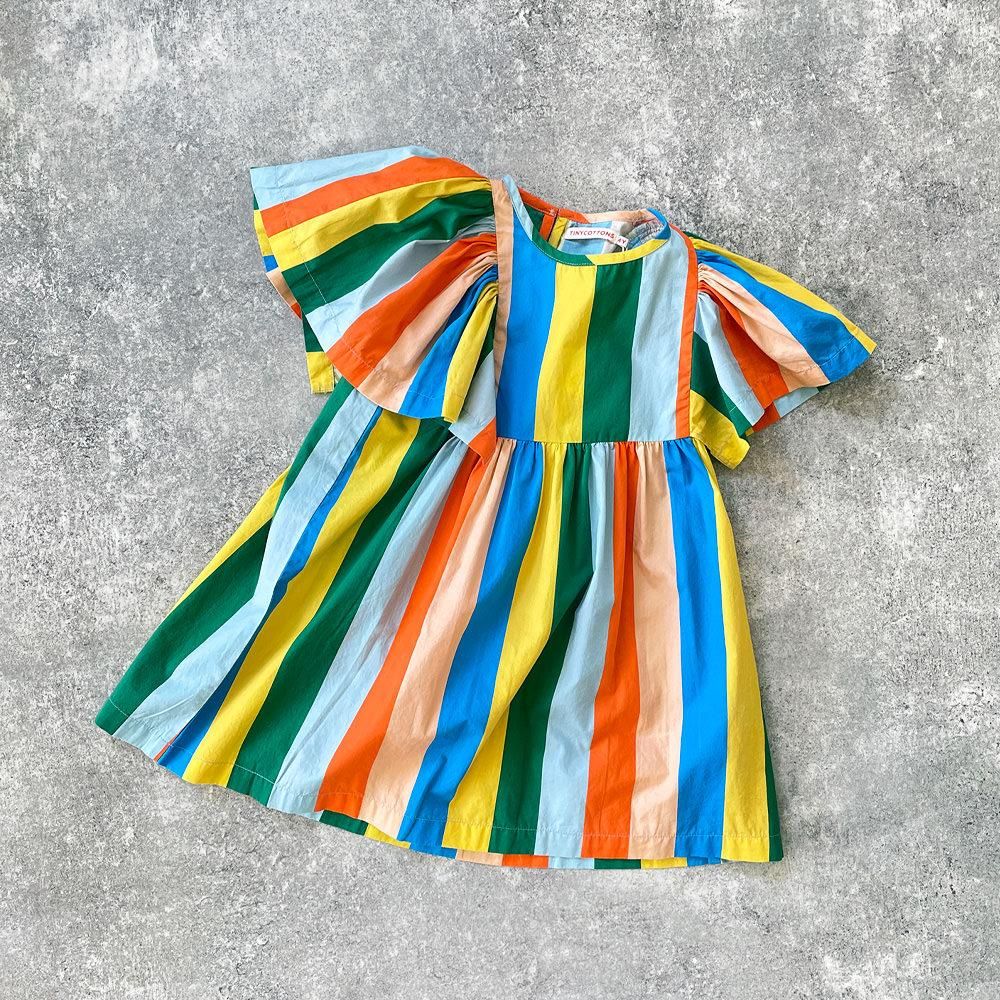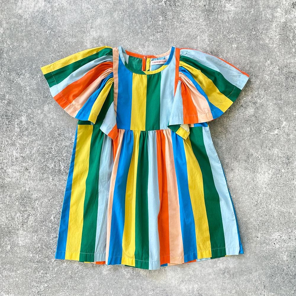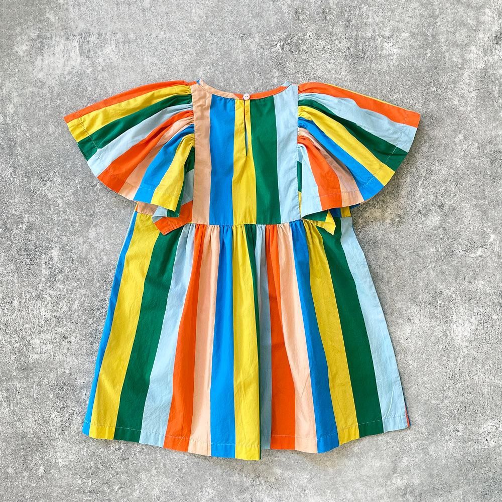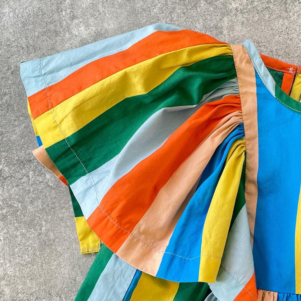 今シーズンのテーマ"PARAISO TINY"、イメージソースのジャングルの果物と楽器ようなカラフルなワンピースです。夏を元気いっぱいに過ごせそうな軽やかさです。