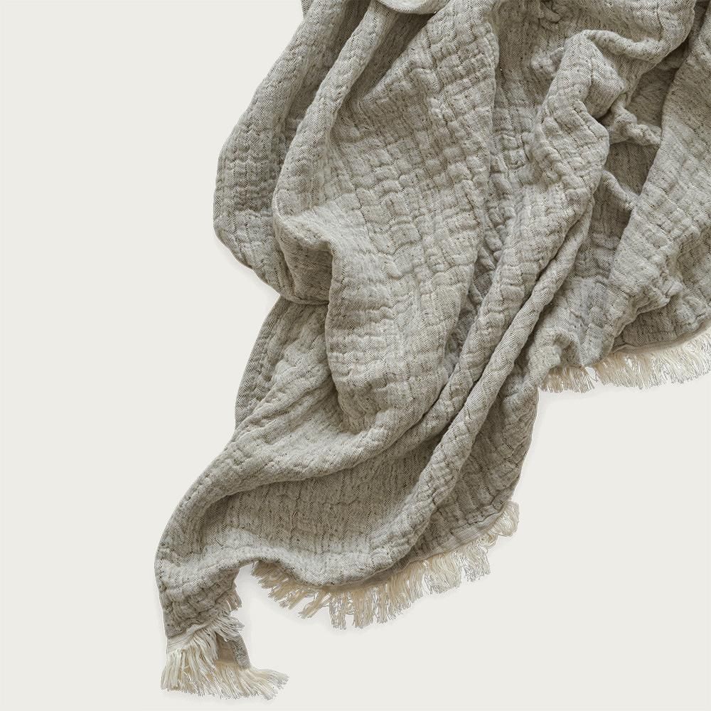 Garbo&Friends Mellow Kale Blanket カルボアンドフレンズ フリンジリネンブランケット Sサイズ(グレー)
