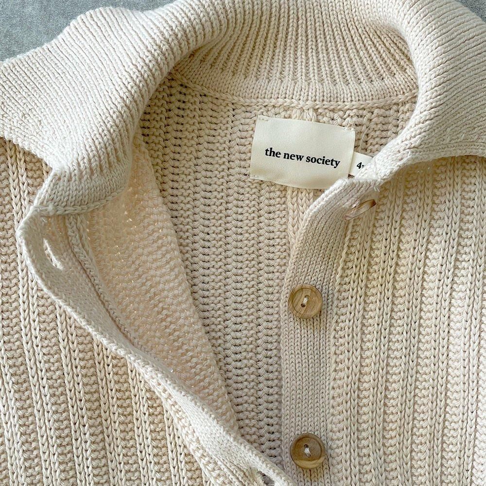 ニットの軽やかなジャンプスーツ。袖と裾のあしらいがとてもthe new societyらしいカラーリングです。