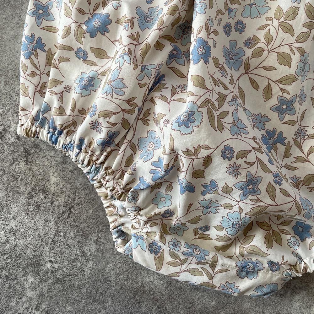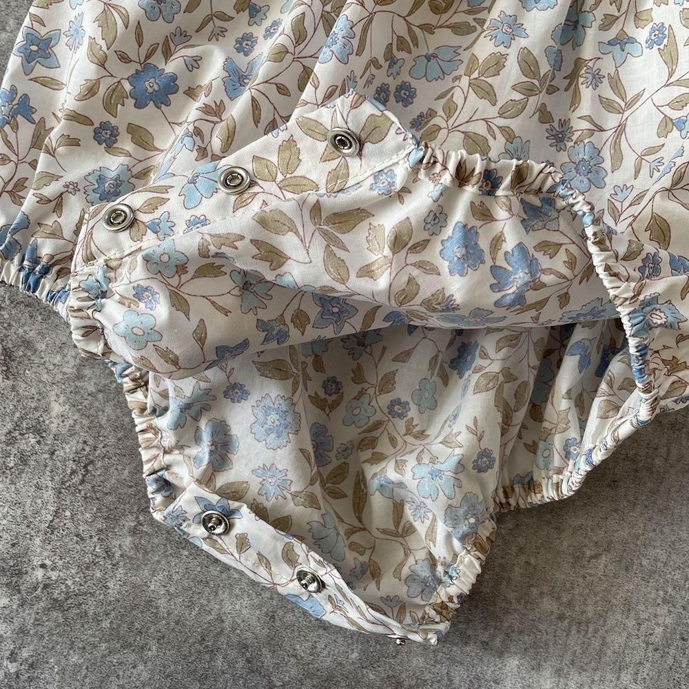 - 袖口・足口ゴム入り/股下開き・金属スナップ/胸元シャーリング