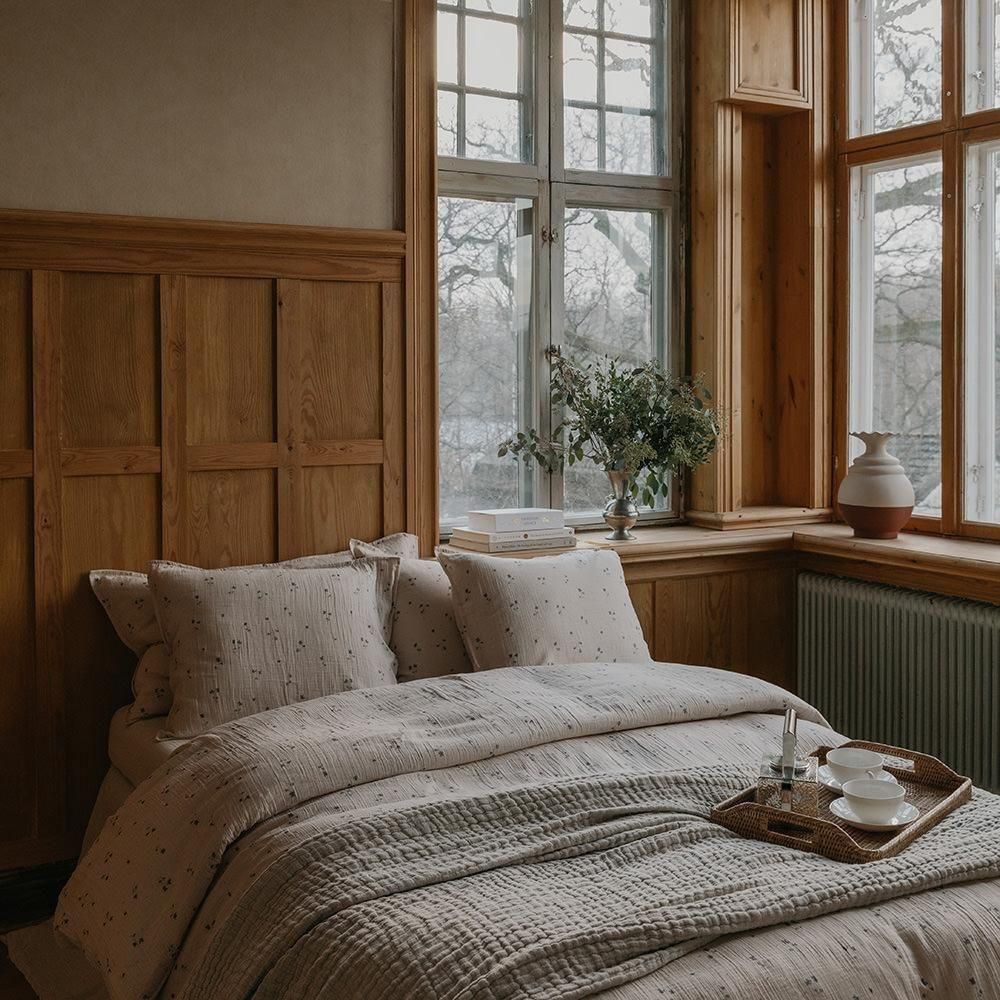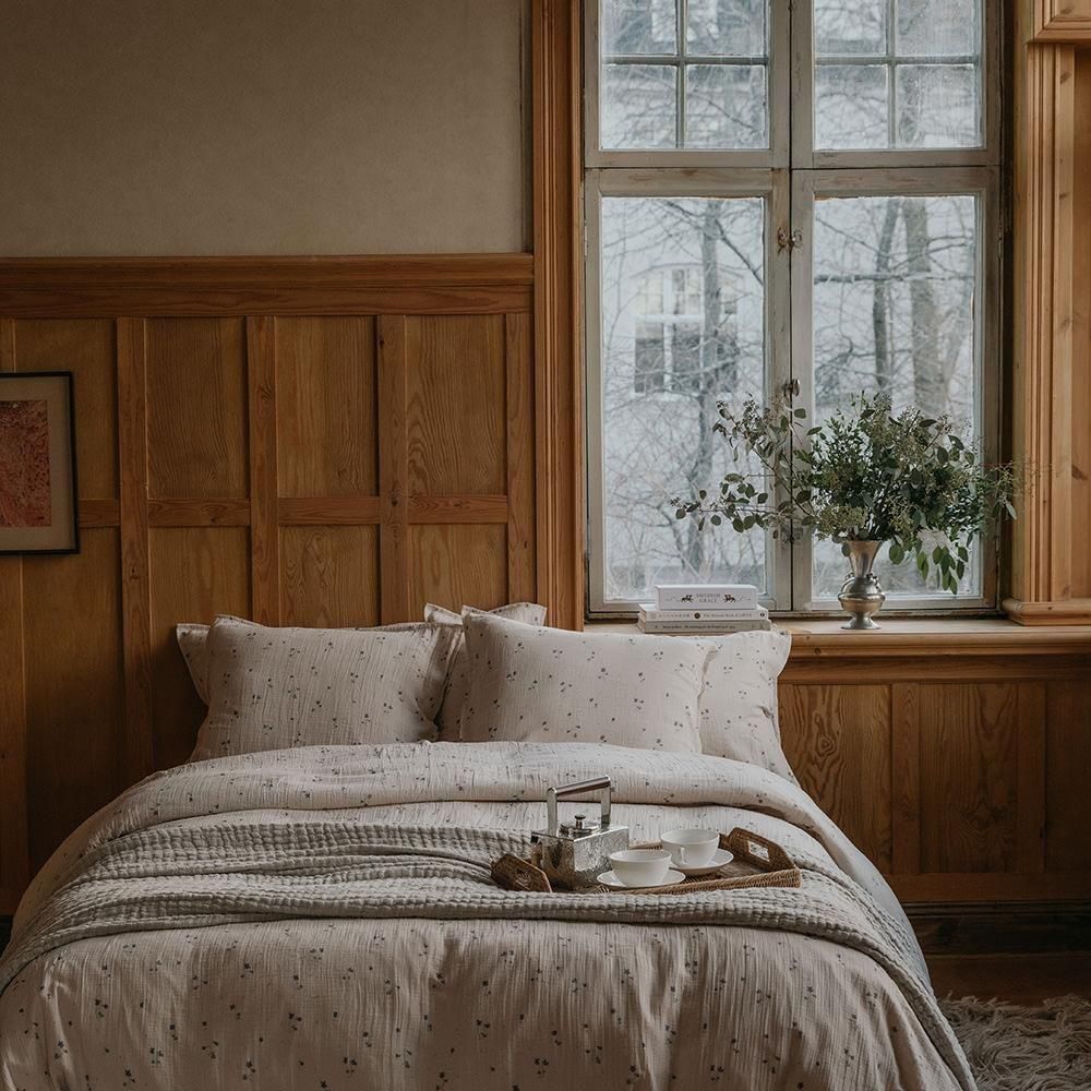 こちらは控えめなViola柄。インテリアの邪魔をせず、自然な風合いはリラックスして眠れそう。
