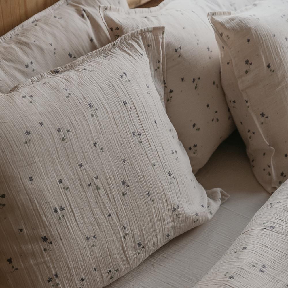 スワドル(おくるみ)と同じ、肌触りの優しいオーガニックコットン製の枕カバーです。暑い夏もサッと汗を吸ってくれそう。あまり日本では馴染みのない50cm×60cmというサイズですが、折込タイプなので50cm×50cmのクッションに使用しても良さそう。