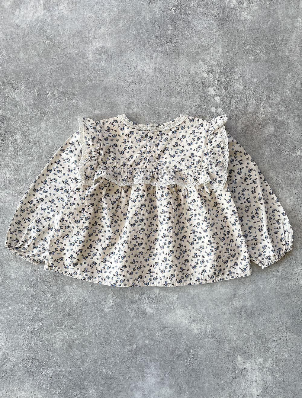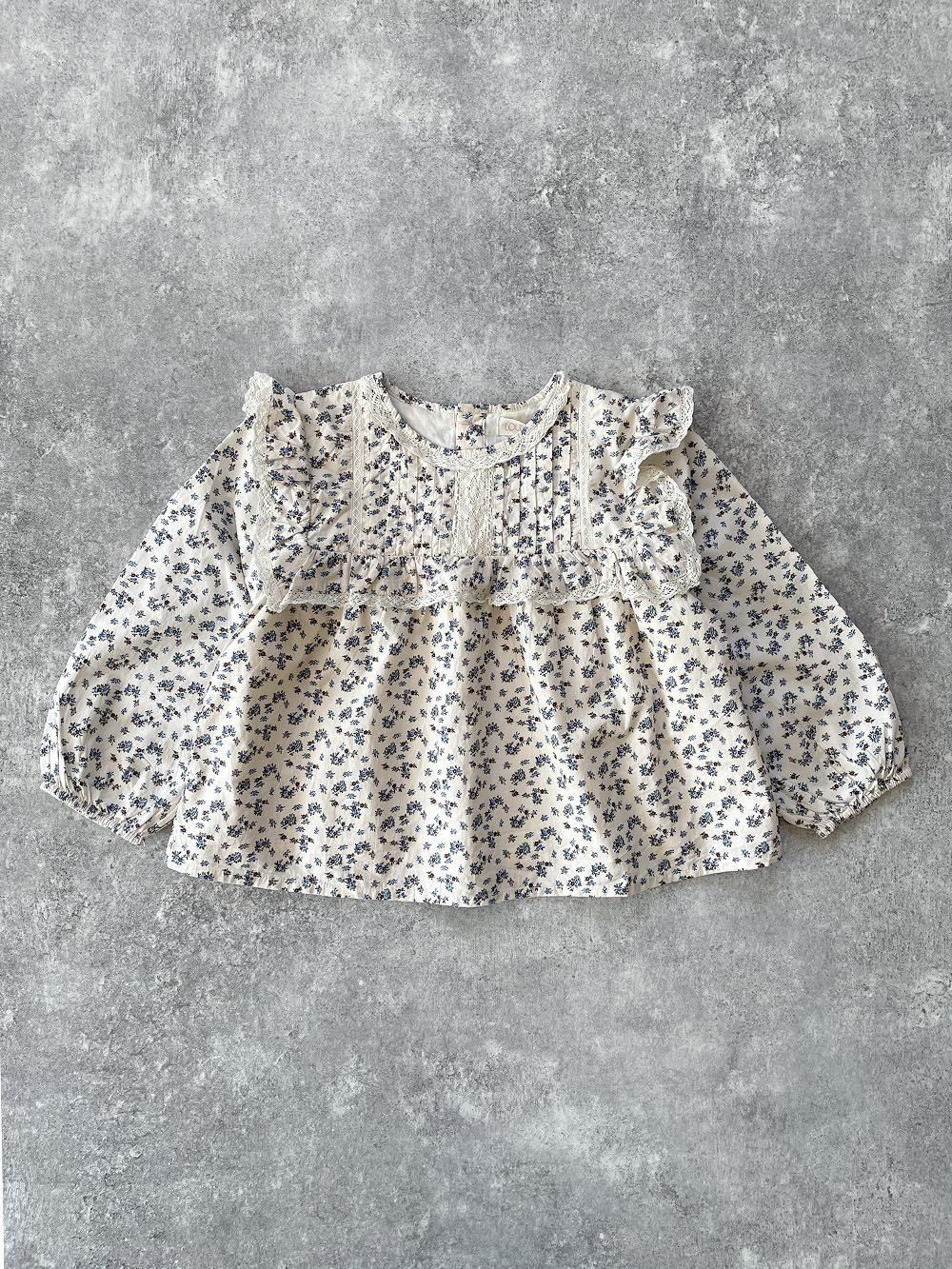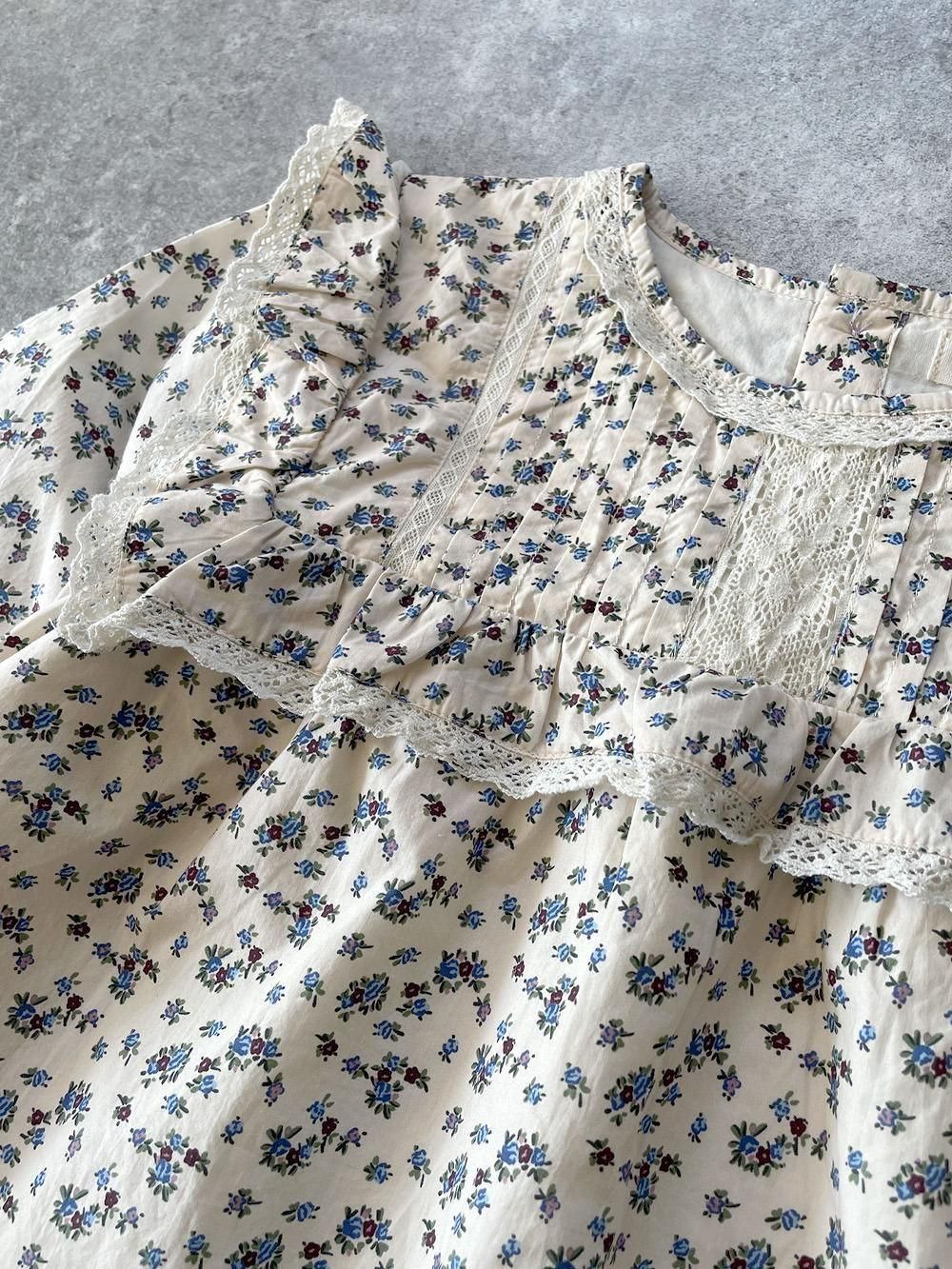 プリーツ・フリル・レースの甘いディティールをすっきりとしたカラーの小花柄で落ち着いた雰囲気にしたブラウス。薄手の布帛生地なので秋から春まで長いシーズンお召しいただけます。ベースがアイボリーなので、カラーのボトムやデニムなどとも合わせやすい。寒い時期はベストを合わせるのも素敵です。
