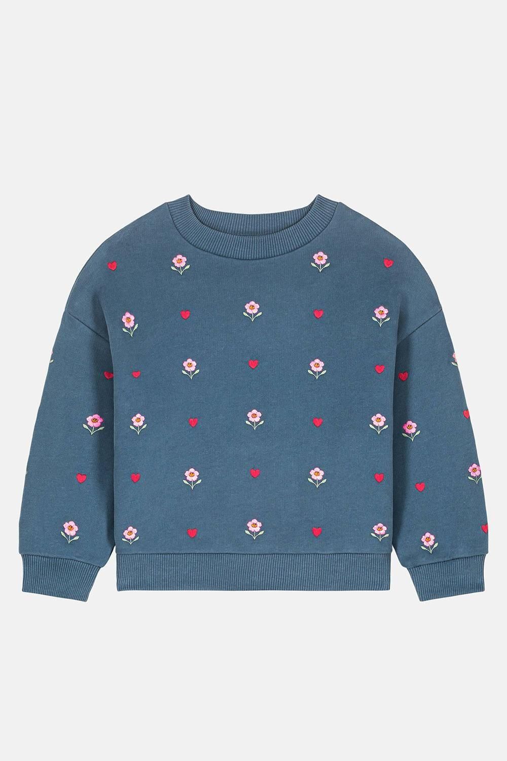 小さなお花の刺繍が施されたスウェット。裏起毛で暖かく、寒い時期を可愛く快適に過ごせる一枚です。