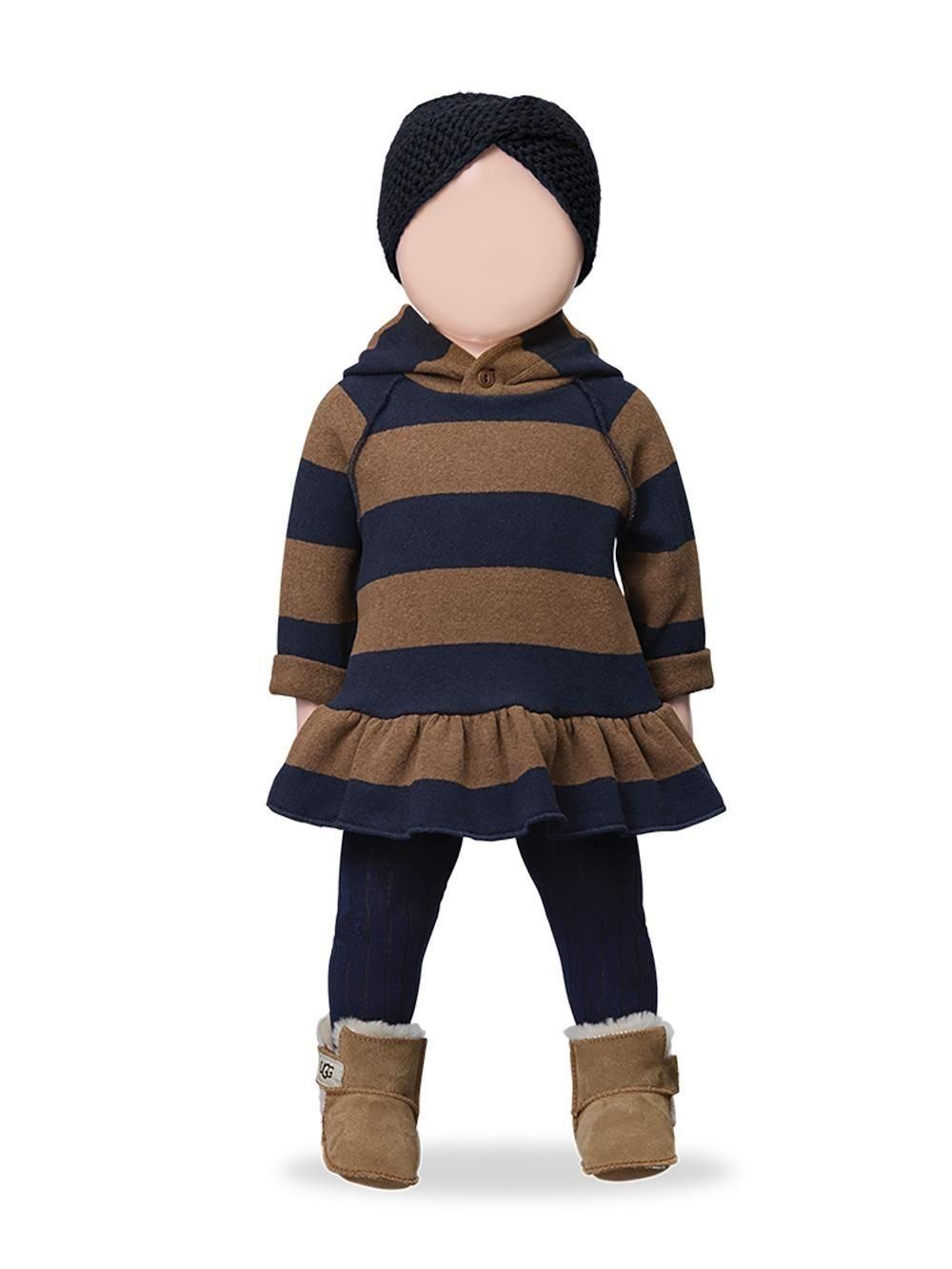 ニット素材にフード、フリル、そしてストライプを組み合わせた、スポーティさと可愛らしさが絶妙にミックスされたワンピース。冬の装いに軽やかなアクセントを添え、1枚で存在感のあるコーディネートが完成します。柔らかなニットの風合いで着心地もよく、アクティブなシーンからお出かけまで幅広く活躍する一着です。