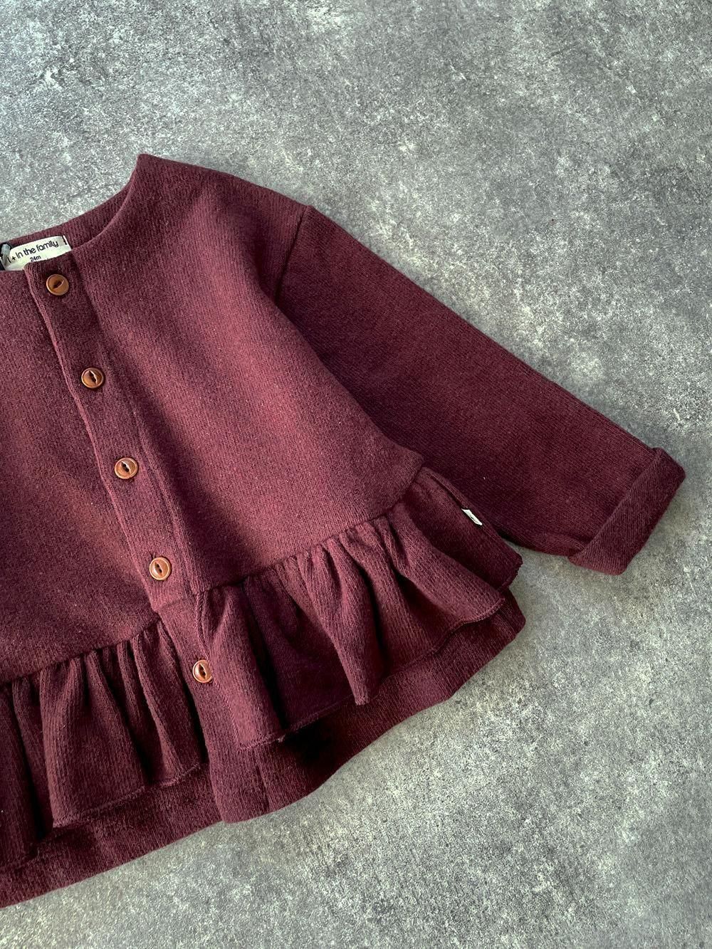 1 + in the family VANESSA melanzana ワンモア イン ザ ファミリー ウエストフリルカーディガン(メランザーナ)