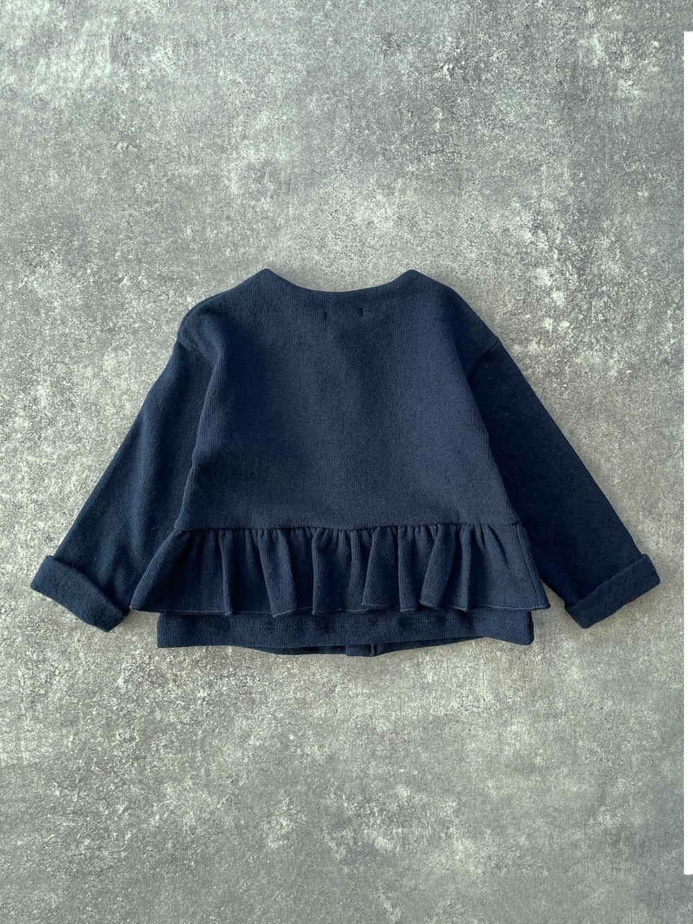 1 + in the family VANESSA dark-blue ワンモア イン ザ ファミリー ウエストフリルカーディガン(ダークブルー)