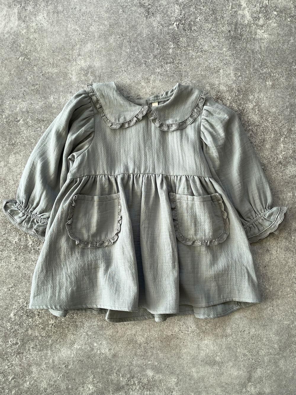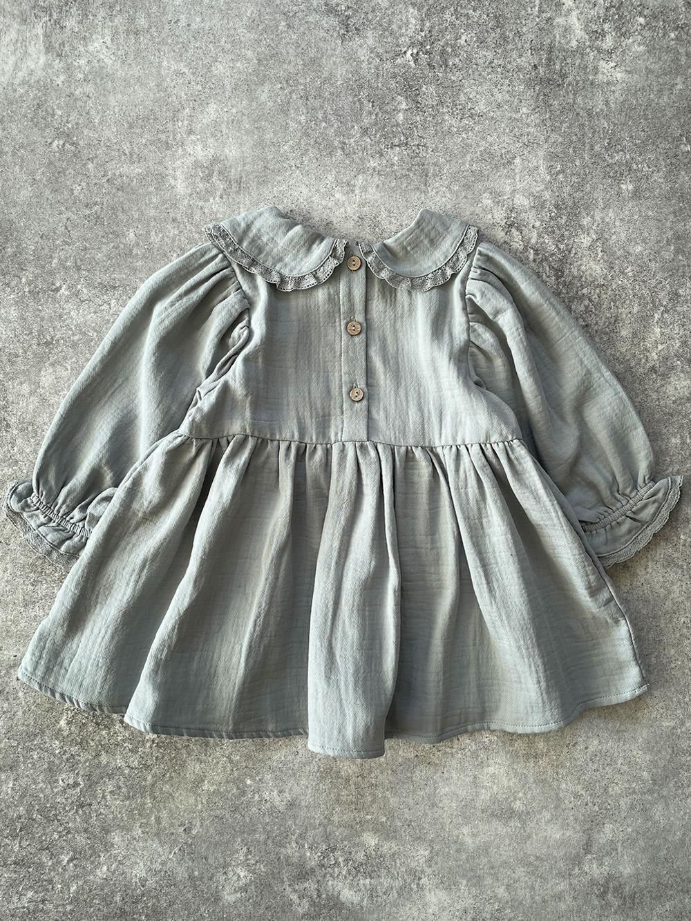 Quincy Mae MARISOL DRESS STEEL BLUE クインシーメイ 襟付き長袖ワンピース(ブルー)