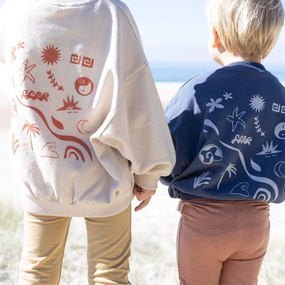100%オーガニックコットンのフレンチテリー(ループ裏毛)素材を使用したスウェットシャツ。背面には遊び心あふれるビーチモチーフのプリント、フロント胸元にはビーチコーマーのグラフィックが施されています。ほどよい厚みのループバック仕様で、リラックス感のあるボクシーフィットが特徴。男女問わず着られるユニセックスデザインです。裏起毛ではないスウェットシャツをお探しの方にもおすすめです。