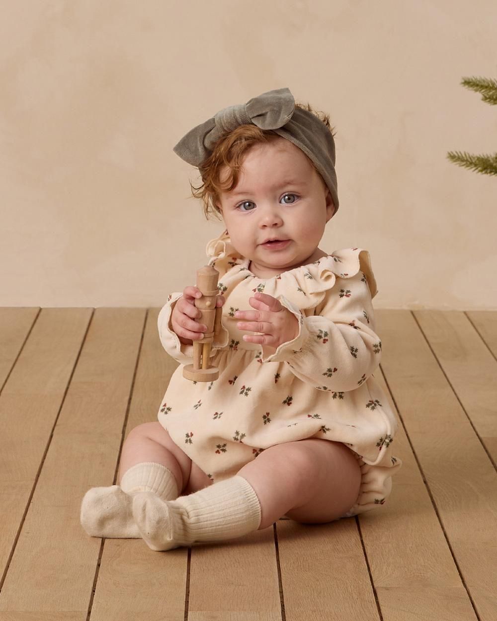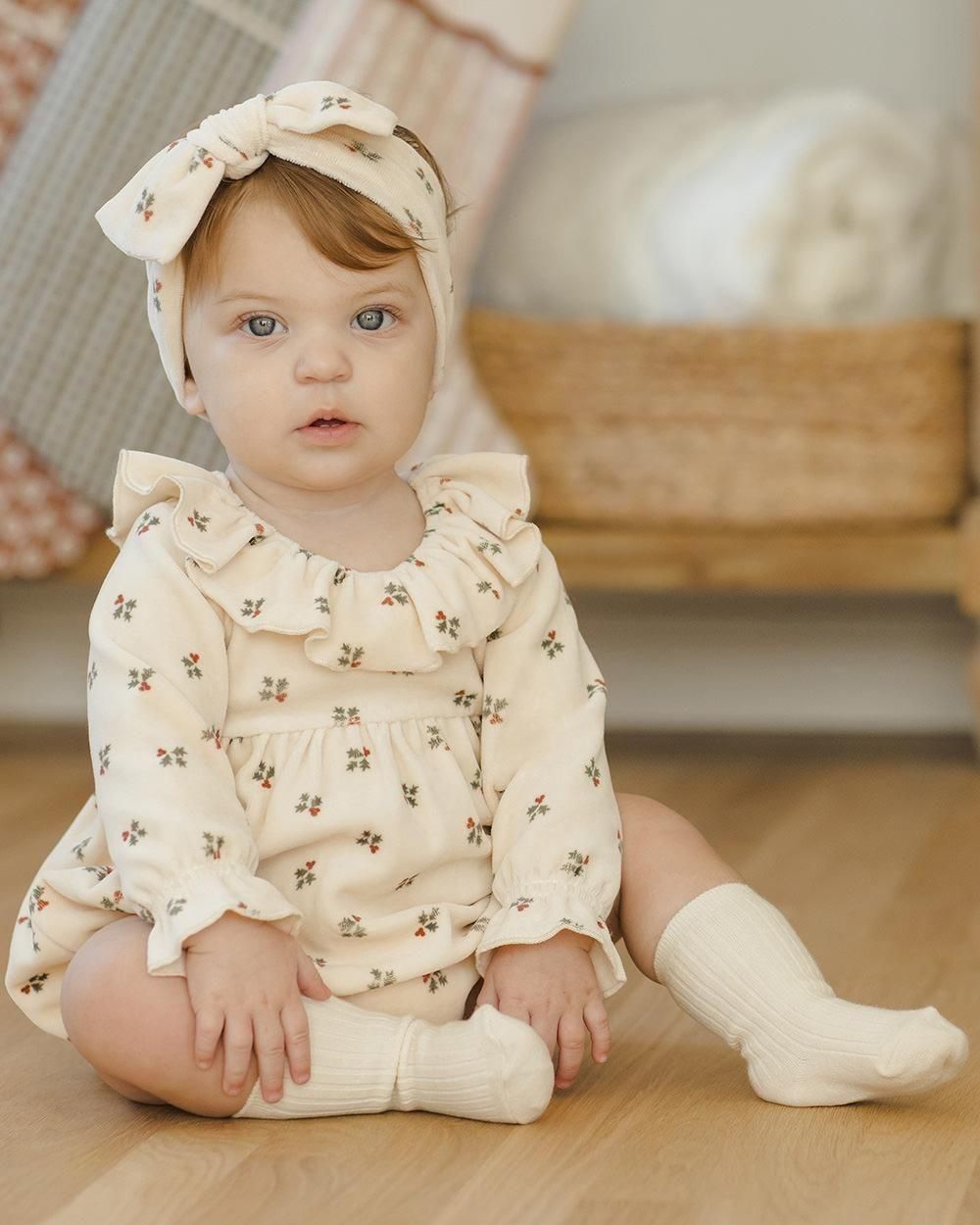 Quincy Mae WENDY ROMPER HOLLY BERRY NATURAL クインシーメイ 襟付き長袖ロンパース(ナチュラル)