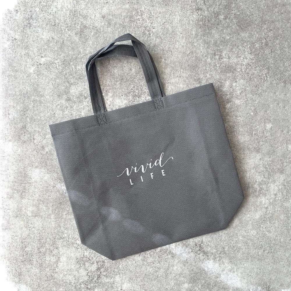 vivid LIFEのギフトボックスがちょうど収まる、不織布製のギフトショッパーです。 中身が透けにくい上品なグレーで、大切な贈り物をより美しく引き立てます。 A4サイズが入るゆとりのある大きさで、ギフトを受け取った後はサブバッグとしても活躍します。