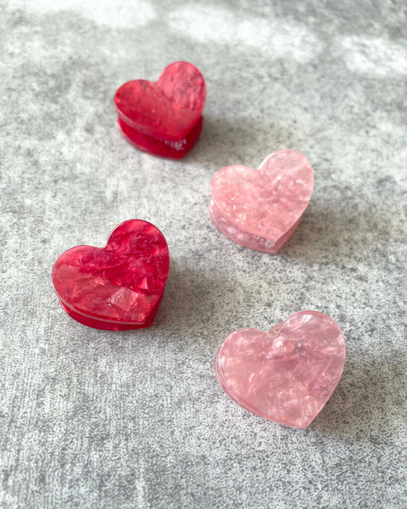 人気のハートモチーフをマーブル模様で仕上げた、小さな宝石のようなクリップ。デイジーと同じくミニサイズなので、まだ髪の量が少ないお子様にも使いやすい設計です。